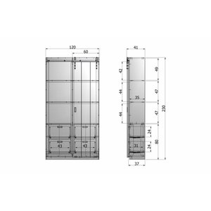 - Note: the cabinet has a height of 230 cm, because the fittings are slightly above it, the total height is 232 cm. The cabinet is supplied as a kit with clear assembly instructions.